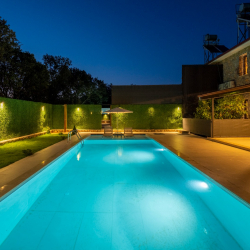 Der Pool hat die Abmasse 11m x 4m großen Pool bei einer Wassertiefe von 1,50m.