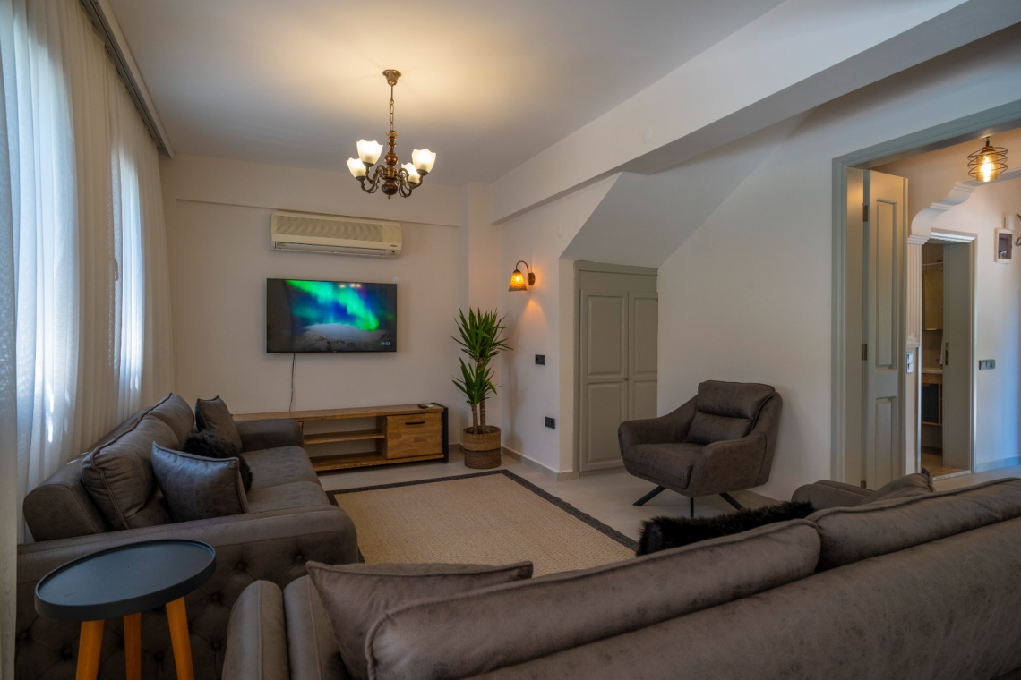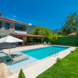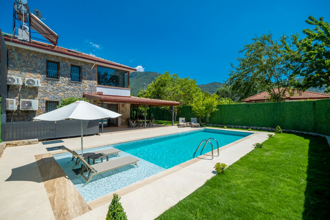 Die Villa befindet sich im in Kayakoy in der Nähe von Fethiye und ist ca. 8km vom Strand entfernt. Zum Stadtzentrum sind es 7km. Einkaufsmöglichkeiten und Restaurants sowie eine Busverbindung befinden sich in direkter Nähe.