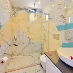 1. Schlafzimmer: 1 Doppelbett, Jacuzzi, Kleiderschrank, Schminktisch, Klima, Balkon, Dusche und WC