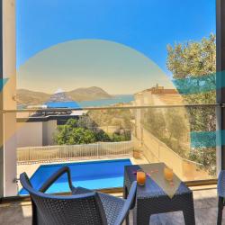 Die gemütliche Terasse mit Meerblick hat einen 5,5 x 3m großen Pool mit einer Wassertiefe von 1,60m.
